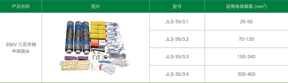 35kV單芯冷縮中間接頭系列產(chǎn)品,適用于21/35、26/35kV三芯聚乙烯和交聯(lián)聚乙烯電力電纜。冷縮電纜附件采用進口液態(tài)硅橡膠材料制造而成,不但具有十分優(yōu)良的電氣性能,而且還具有優(yōu)異的憎水性、高彈性、使用壽命長及恒定的收縮壓力等物理特性。采用冷縮電纜附件,無需明火及特殊工具,只需輕輕抽取塑料支撐條即可,就能自動收縮復位,安裝非常方便于工作。具有良好的電氣性能和機械性能,能在各種惡劣的環(huán)境條件下長期使用。具有重量輕、安裝方便等優(yōu)點。廣泛地應用于電力、石油、化工、冶金、鐵路、港口和建筑各個領域。