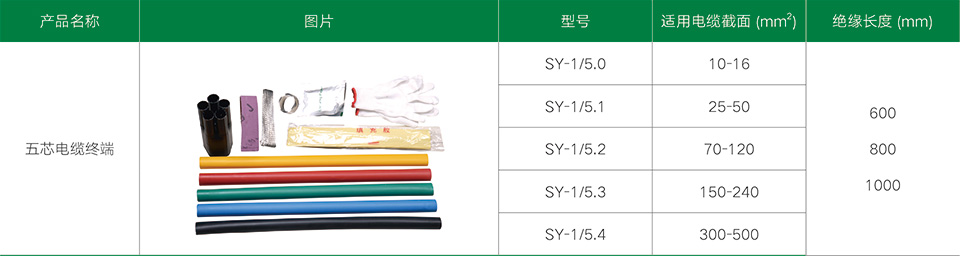 1KV熱縮電力電纜終端頭、中間接頭系列產品,集防水、應力控制、絕緣于一體。具有良好的電氣性能和機械性能,能在各種惡劣的環(huán)境條件下長期使用。具有重量輕、安裝方便等優(yōu)點。廣泛地應用電力、石油化工、治金、鐵路港口和建筑領域。