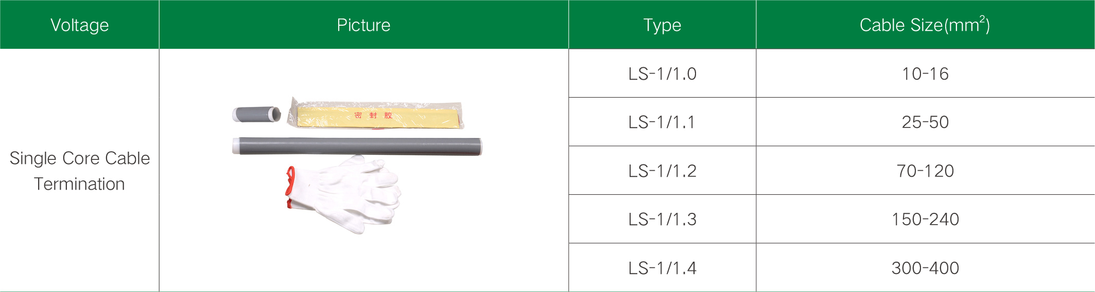 1kV cold shrinkable terminal series products, suitable for 0.6/1kV single-core, two-core, three-core, four-core, five-core polyvinyl chloride, cross-linked polyethylene, rubber and plastic power cables, with good electrical and mechanical properties, can be used for a long time under various harsh environmental conditions. It has the advantages of light weight and easy installation. It is widely used in electric power, petroleum, chemical industry, metallurgy, railway port and construction and other fields.