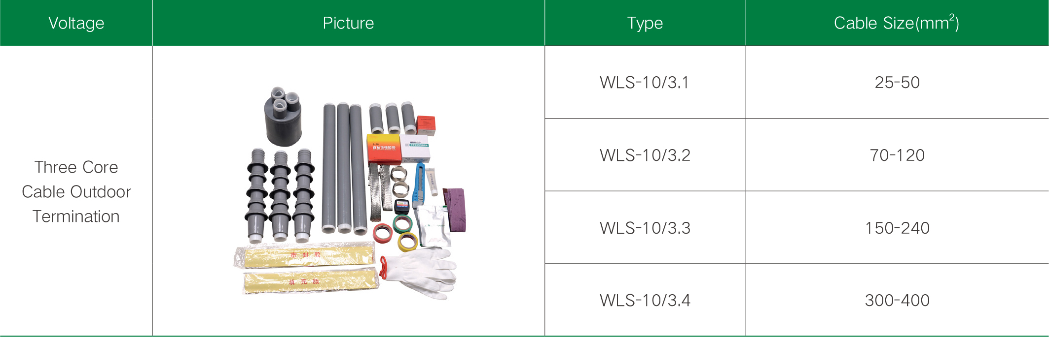 10KV three-core cold shrinkable cable accessories series, suitable for 3.6/6, 6/10, 8.7/10, 8.7/15kVThree-core polyethylene and cross-linked polyethylene power cables. Made of liquid silicone rubber, it integrates waterproofing, stress control, shielding and insulation. It has good electrical and mechanical properties and can be used for a long time under various harsh environmental conditions. It has the advantages of light weight and easy installation. It is widely used in electric power, petroleum, chemical industry, metallurgy, railway, port and construction and other fields.