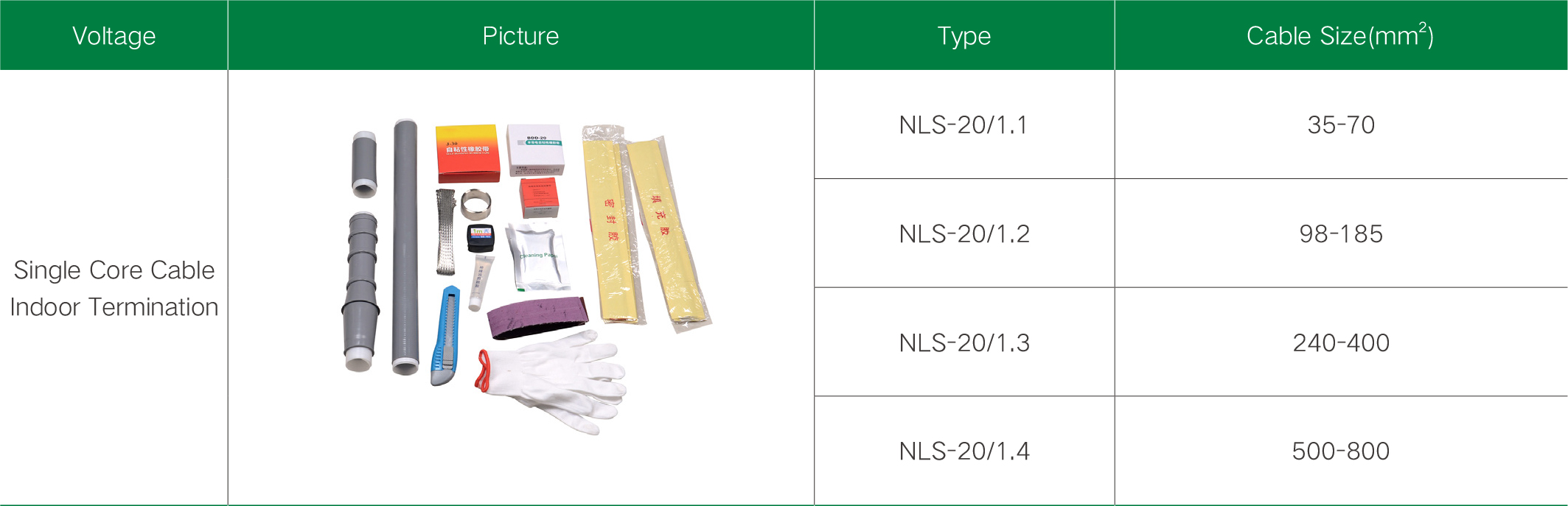 20kV single core cold shrinkable cable accessories series, suitable for 12/20, 18/24kVSingle core polyethylene and cross-linked polyethylene power cables. Cold shrinkable cable accessories are made of imported liquid silicone rubber materials, which not only have very good electrical properties, but also have excellent physical characteristics such as water repellency, high elasticity, long service life and constant shrinkage pressure. Using cold shrinkable cable accessories, no need for open flame and special tools, just gently extract the plastic support strip, can automatically shrink and reset, installation is very convenient for work. It has good electrical and mechanical properties and can be used for a long time under various harsh environmental conditions. It has the advantages of light weight and easy installation. It is widely used in electric power, petroleum, chemical industry, metallurgy, railway, port and construction fields.