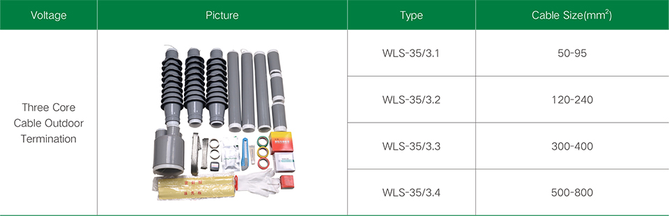 35kV three-core cold shrinkable cable accessories series for 21/35, 26/35kV three-core polyethylene and cross-linked polyethylene power cables. Cold shrinkable cable accessories are made of imported liquid silicone rubber materials, which not only have very good electrical properties, but also have excellent physical characteristics such as water repellency, high elasticity, long service life and constant shrinkage pressure. Using cold shrinkable cable accessories, no need for open flame and special tools, just gently extract the plastic support strip, can automatically shrink and reset, installation is very convenient for work. It has good electrical and mechanical properties and can be used for a long time under various harsh environmental conditions. It has the advantages of light weight and easy installation. It is widely used in electric power, petroleum, chemical industry, metallurgy, railway, port and construction fields.