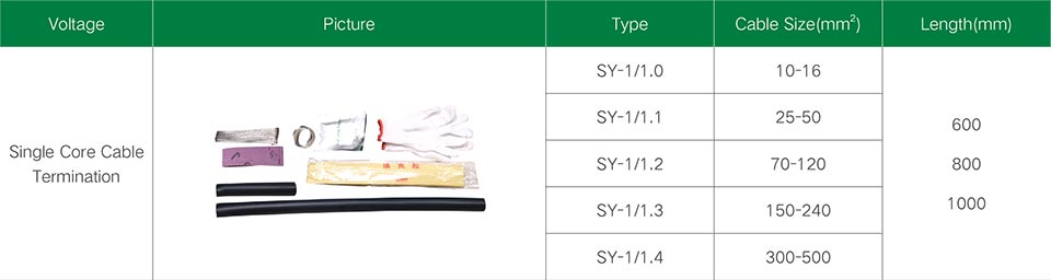 1KV heat shrinkable power cable terminal head, intermediate joint series products, set waterproof, stress control, insulation in one. It has good electrical and mechanical properties and can be used for a long time under various harsh environmental conditions. It has the advantages of light weight and easy installation. It is widely used in electric power, petrochemical, metallurgy, railway port and construction fields.
