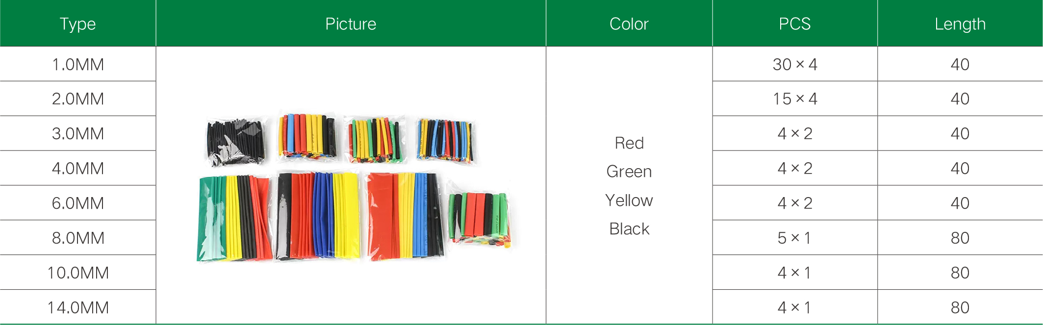A household heat shrink tubing set is an electronic material used for insulation, repair, and protection of wires and cables in the home. It usually consists of a set of heat shrink tubing equipped with other necessary accessories to provide a simple and effective solution for wire insulation and maintenance.