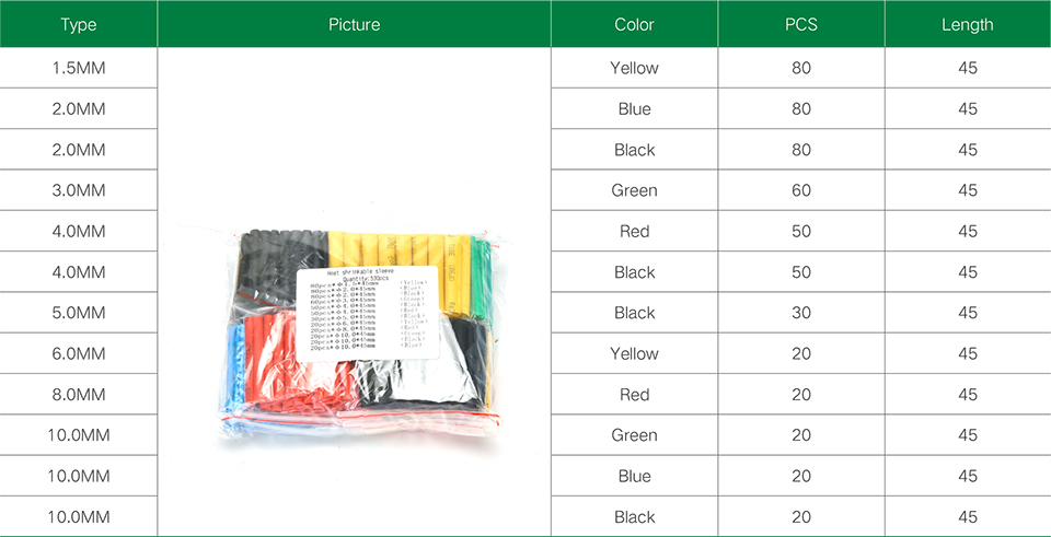 Heat shrink tubing set 530PCS (bagged)