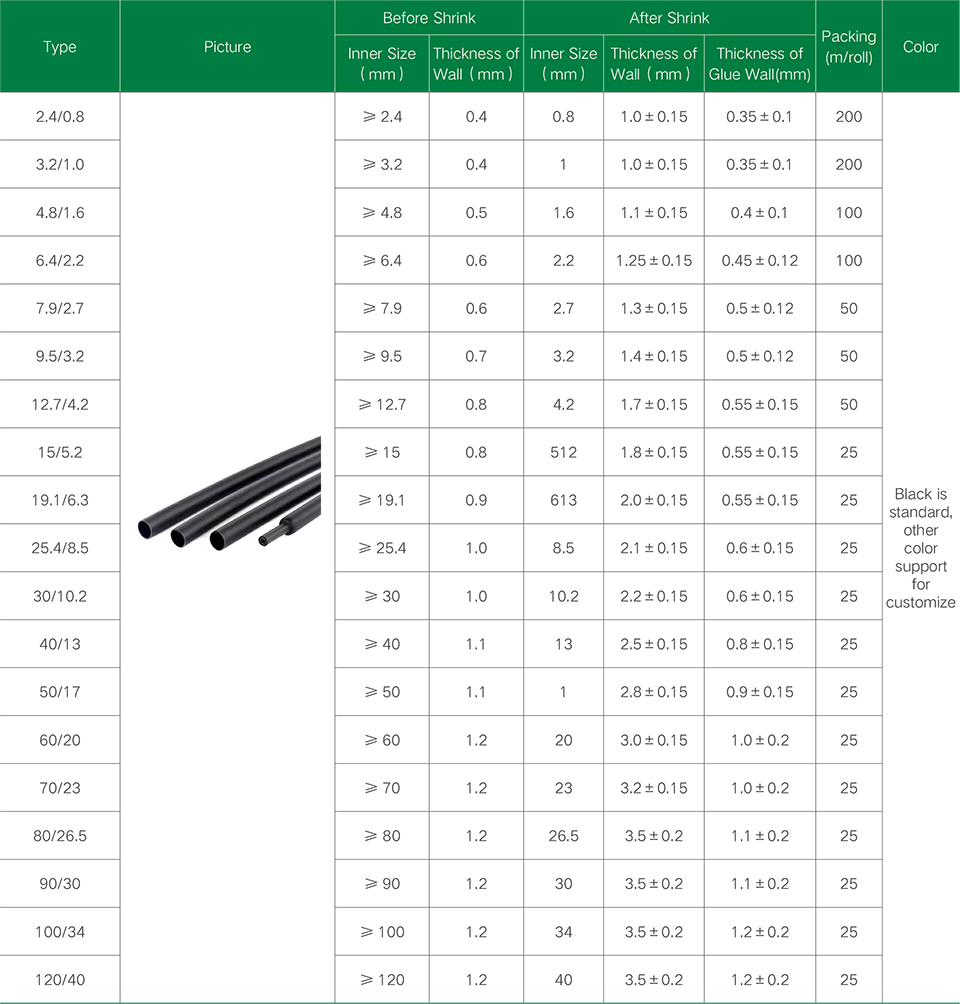 Heat shrinkable double-walled tubing provides a comprehensive insulation, protection and sealing solution to ensure the safe operation of wires in a variety of environments. When using heat shrinkable double-wall pipe, you should choose the appropriate specifications according to the size and requirements of the wire, and follow the correct heating method and instructions to obtain the best insulation and protection effect.